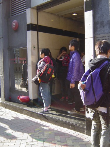 連接汽車路旁行人路,通道是寬闊的正門,前臨一級台階障礙,無斜道輔助,無觸覺引路徑.