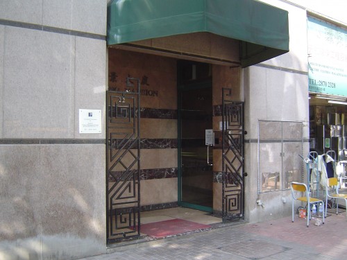 連接汽車路旁行人路,通道是一扇門闊度的住宅正門,前臨寬闊的屋苑出入口,設有一級台階障礙,無斜道輔助,無觸覺引路徑,門是單邊綠色金屬框玻璃推門,可輸入密碼開啟.