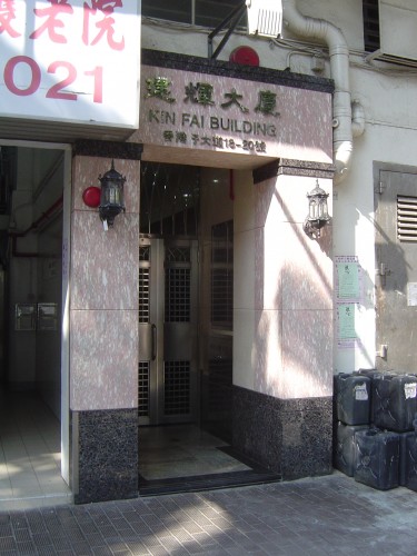 連接汽車路旁行人路,通道是一扇閘門闊度的住宅正門,前臨一級台階障礙,無斜道輔助,無觸覺引路徑,閘門是不銹鋼格子單邊閘門.