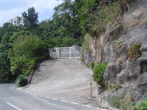 連接汽車斜路,通道是寬闊無障礙的屋苑汽車出入口閘門,連接汽車暗斜路,往來屋苑住宅,汽車斜路無觸覺引路徑,閘門是白色金屬格子大閘門.