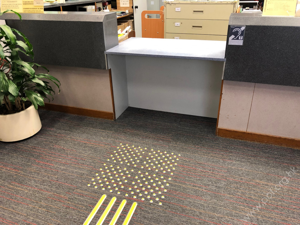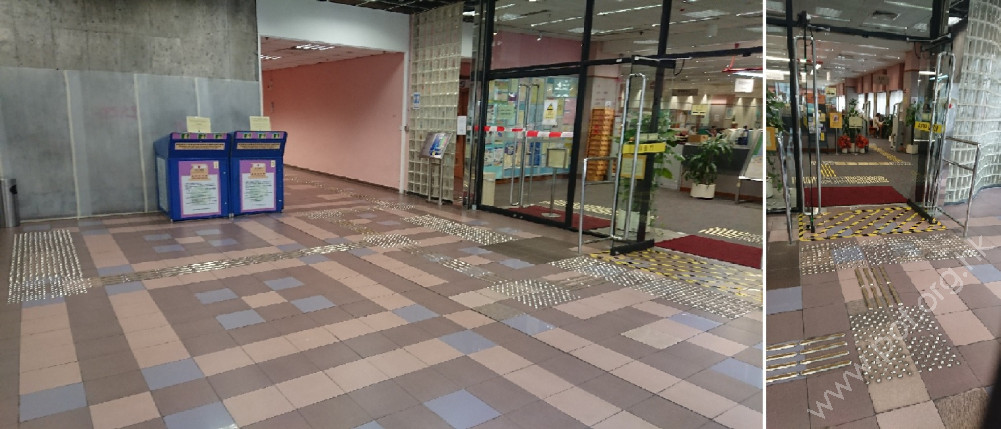金屬觸覺引路帶,由士美非路市政大廈的2號升降機門外引導至圖書館入口的自動門前,再由門內穿過右邊的防盜通道,引導至詢問處的低櫃台前;或由士美非路市政大廈的2號升降機門外向左引導至摸讀平面地圖前,再延伸到暢通易達洗手間門前。