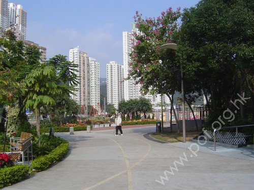 連接公園及長廊部份的出入口及行人通道,通道是寬闊平坦無障礙的露天公園行人路,無觸覺引路徑.