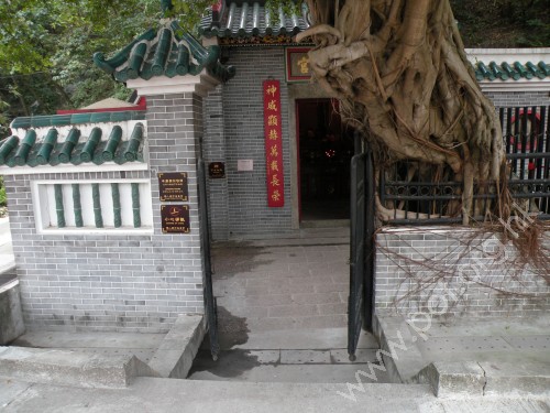 連接往來公園行人路的閘門口,通道是寬闊的廟宇正門,設有一級麻石門檻障礙,無斜道輔助,無觸覺引路徑,門是紅色對開木門.