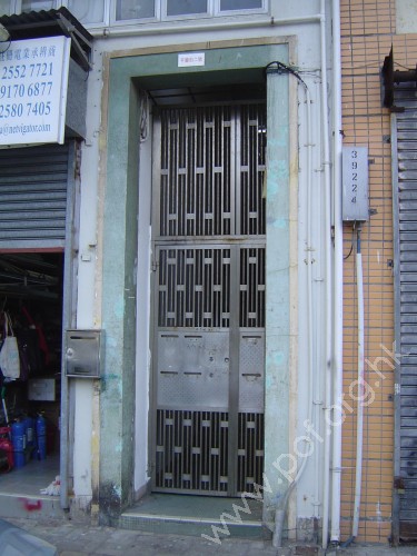 連接汽車路旁行人路,通道是一扇門闊度的住宅正門閘門,比較狹窄,有一級台階障礙,無斜道輔助,無觸覺引路徑,閘門是不銹鋼面單邊閘門.