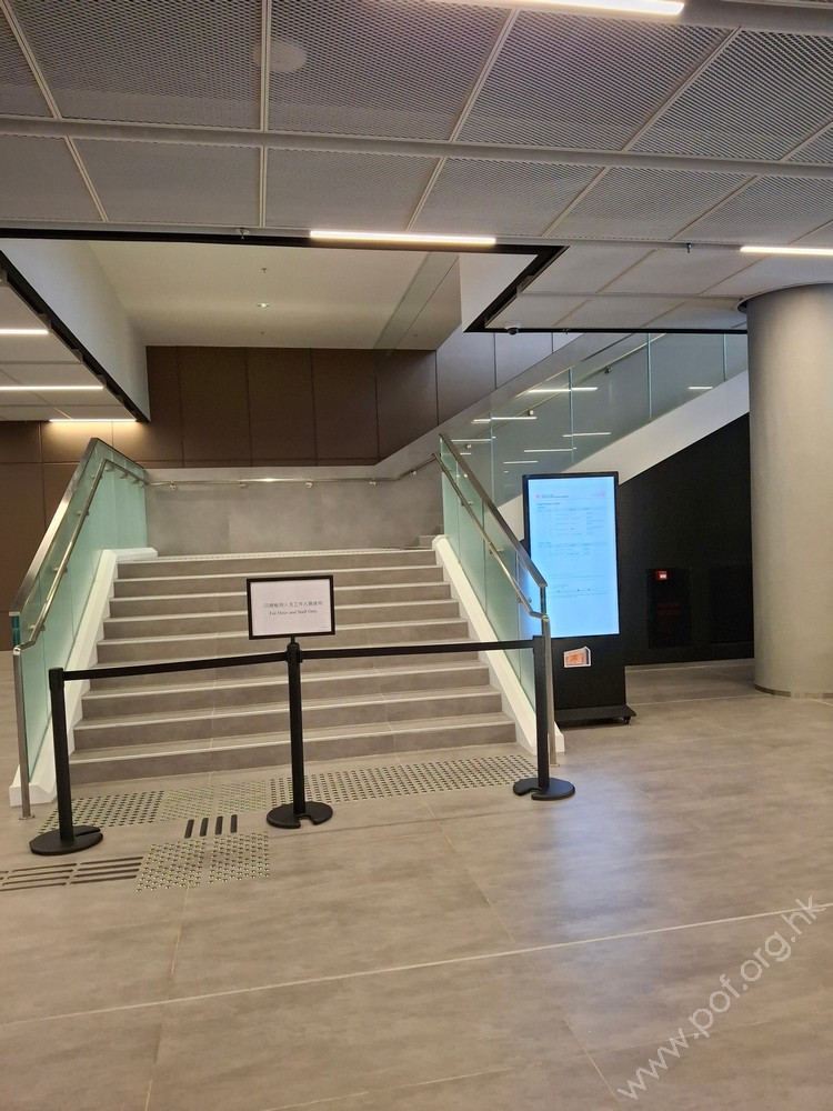 該場地經翻新工程後於2025年年底開放。通道是開放式、寬闊平坦,出入口前是寬闊的平面空間,出入口設有自動玻璃門。門外門內均設有不鏽鋼質地的觸覺引路帶:門外的觸覺引路帶由場地地界開始,伸延至玻璃門前;門內的觸覺引路帶往內依次伸延至摸讀平面圖前、詢問處前、暢通易達洗手間前和升降機前。