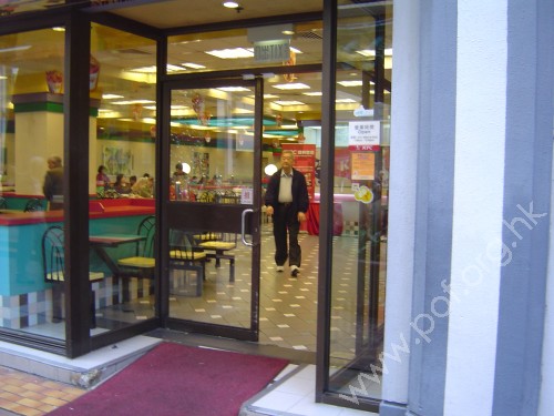 連接香港仔廣場行人通道,通道是寬闊無障礙的正門,前設斜面連接行人通道,無觸覺引路徑,門是棕色金屬框玻璃對開推門.