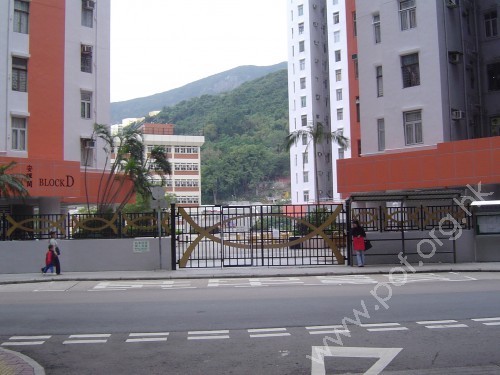 連接汽車路旁行人路,通道是寬闊無障礙的屋苑出入口閘門,往來住宅樓宇,無觸覺引路徑,閘門是黑色金屬框架對開大閘門.