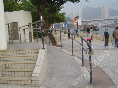 連接往來花園的出入口,通道是寬闊平坦無障礙的露天海傍行人通道,連接沿海傍的船隻碼頭及渡口,無觸覺引路徑.