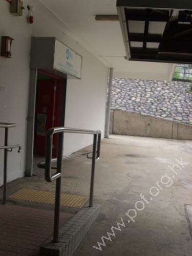 通道寬闊,入口設有一小塊簡易斜板,無觸覺引路帶,門口有兩扇紅色木門。