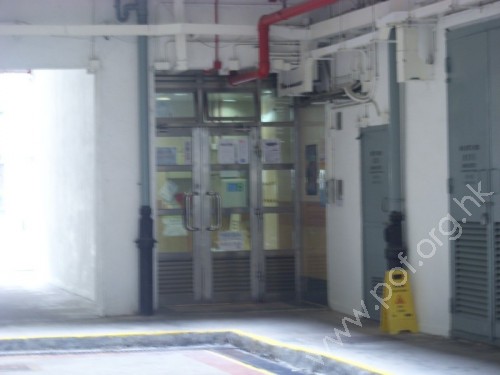 通道闊度大於1.05米,入口前有一級梯級,設有一扇不銹鋼門,無觸覺引路帶。