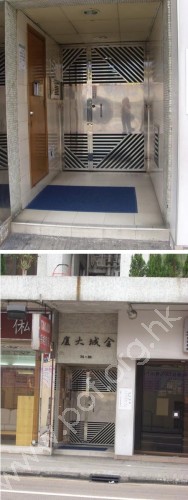 通道足有1.05米,入口前有一級梯級,大廈入口是一扇不銹鋼密碼閘門,没有觸覺引路帶。