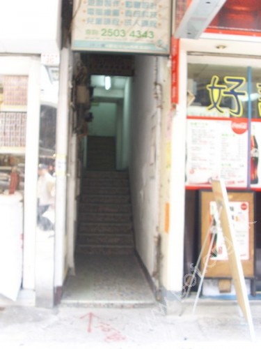 通道足1.05米,入口先有一級,之後是多段梯級連接地面及樓上各層,没有觸覺引路帶。