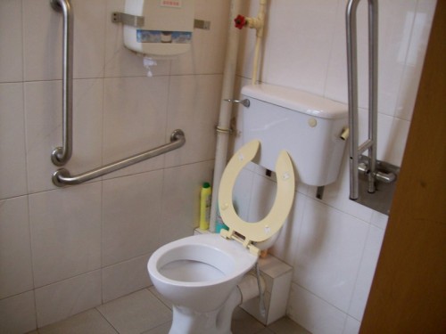 廁所外設有暢通易達標誌,內部空間足夠,設有L型和摺合扶手.無緊急叫喚鍾.馬桶高度適中,沖水摯和水龍頭均單手可操作.洗手盆下的空間足夠.但該商場的殘廁是上鎖的,有需要者需尋求職員幫助.