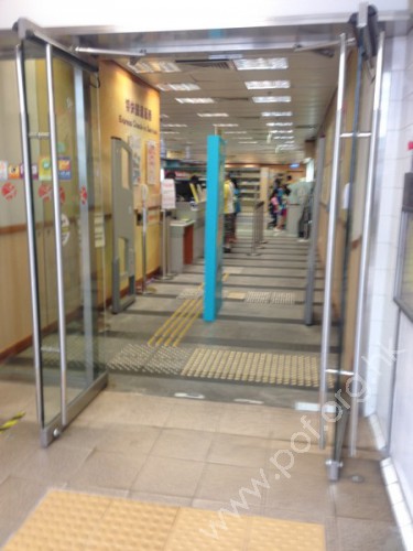 通道非常寬闊,入口是自動玻璃門設計,門內兩邊及中間設有防盜裝置,小心碰撞,門內外均有觸覺引路帶:門外的觸覺引路帶連接至市政大廈升降機前,門內往詢問處前伸延。