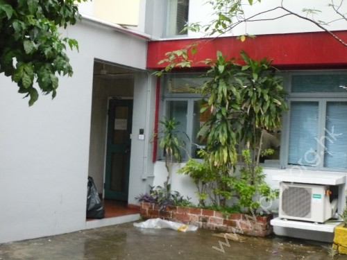 通道是寬闊的救護站正門,有一級台階障礙,無斜道輔助,無觸覺引路徑,門是灰綠色對開木門。
