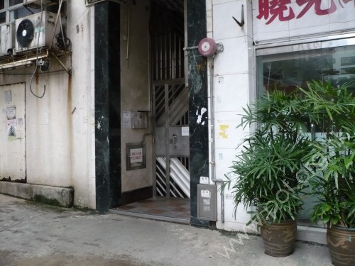 通道是寬闊的住宅正門閘門,前臨一小級台階障礙,無斜道輔助,無觸覺引路徑,閘門是不綉鋼面框閘門。