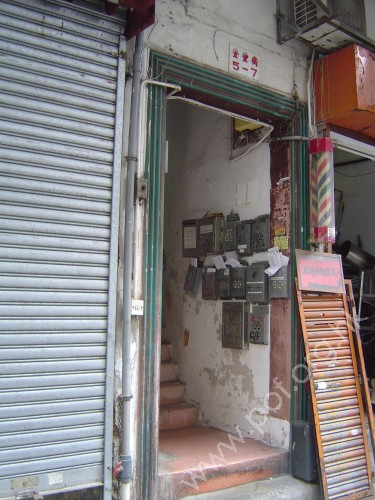 連接汽車路旁行人路,通道是寬闊的住宅正門,前臨一級台階障礙,進入後是梯級通道,無斜道輔助,無觸覺引路徑.