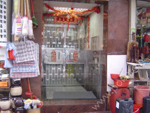 連接汽車路旁行人路,通道是寬闊的住宅正門閘門,有一級台階障礙,無斜道輔助,無觸覺引路徑,閘門是不綉鋼框對開閘門.