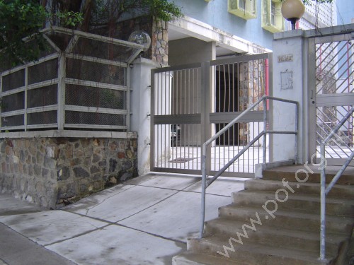 連接汽車斜路旁行人斜路,通道是一扇閘門閘闊度的行人出入口閘門,毗連屋苑汽車出入口閘門,前臨梯級障礙,無斜道輔助,無觸覺引路徑,閘門是金屬框單邊閘門.