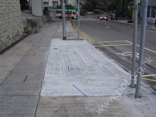 連接汽車斜路與旁行人傘路,位於停車位與行人斜路之間,面積寬闊,斜度低矮,斜面無觸覺警告帶,頂端是行人道保留面積,視野開揚.
