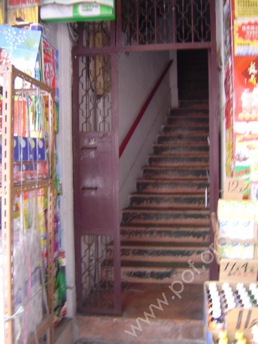 連接汽車路旁行人路,通道是一扇閘門闊度的住宅正門閘門,有一級台階障礙,進入後是梯級,無斜道輔助,無觸覺引路徑,閘門是棕紅色金屬框單邊閘門.