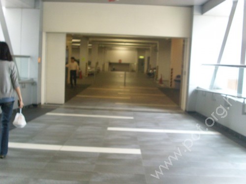 是停車場通往廣場行人天橋通道,寬闊,有少許斜度,無觸覺引路帶。