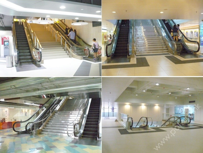 連接商場內2樓、3樓、4樓、5樓及6樓各層,共有兩條自動電梯、上落各一條並排,兩條自動電梯之間均設有梯級;只3樓層及6樓層的自動電梯部份設有黑色觸覺警告帶;無表示移動方向的標誌或指示訊號。