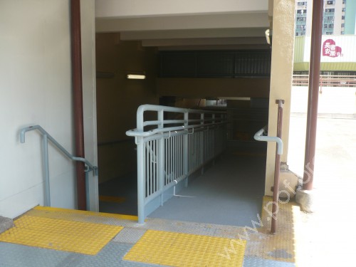 連接商場天台行人路,通道是新增設的無障礙通道,往來禮民樓的住宅出入口,通道是經本會投訴跟進後,由房屋署設置的,主要是一條四段轉拆的斜道,與梯級並排;斜道頂端無觸覺引路帶,底端設有黃色觸覺引路帶。