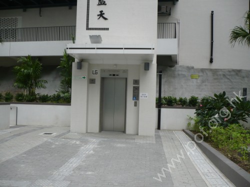 連接往來屋邨行人路的LG層,往來屋邨住宅的停車場地面層與停車場1至4樓,只有一部升降機,門闊0.85米,只LG層門旁按鈕上方設有國際暢通易達標誌,吊廂內兩邊設有金屬圓條扶手,按鈕有觸覺點字及觸覺記號,無顏色對比,緊急警號按鈕是黃色鐘型觸覺標誌,有對講機及視像顯示器,LG層按鈕有星形標誌,顯示主要入口樓層,關門有聲響提示,設有中英兩種語言廣播,需注意開門方向。