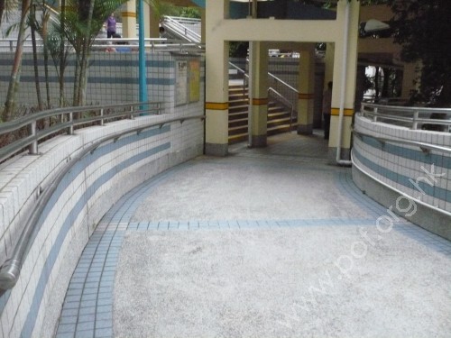位置 : 橫過屋邨汽車路的行人橋梯級通道底端圓型行人斜路兩邊