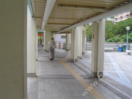 連接田澤樓前有蓋行人路,通道是寬闊平坦無障礙的住宅前行人路,連接往來田健樓的斜道通道,無觸覺引路徑.