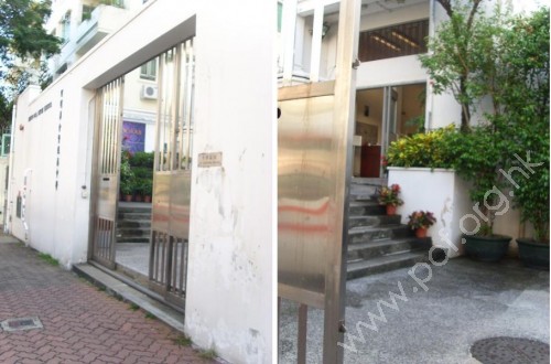 通道寬闊,入口有兩級梯級,設有一扇敞鐵閘在第一級梯級上,旁邊有門鐘。閘內有一段六級梯級,頂部校舍入口再有二級梯級,設有四扇對開有框玻璃門,無觸覺引路帶。
