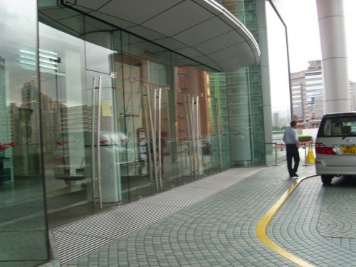 通道非常寛闊,入口設有多扇玻璃推門,地面平坦無障礙,無觸覺引路帶。