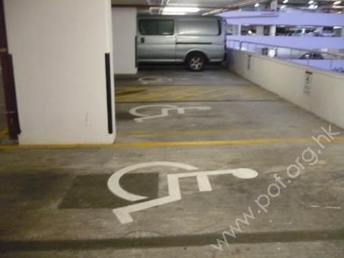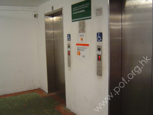 連接停車場1至3樓與5樓層街市及熟食中心,通道是寬闊平坦無障礙的3樓層升降機通道,往來停車場4樓層,前設有1個障殘人士專用泊車位,共有兩部升降機並排,無觸覺引路徑,升降機門旁按鈕上方設有白色圖案藍色底色國燄暢通易達標誌,標示是無障礙設施.