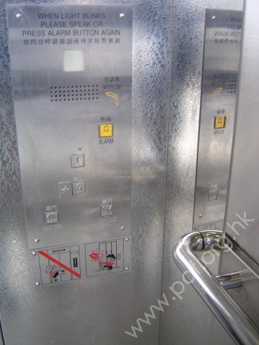 吊廂內有廣東話、英文及普通話廣播通知乘客將在那一層停下。