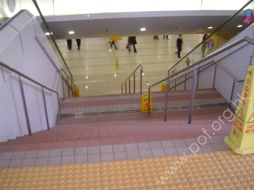 商場LG3層出入口前設有黃色觸覺警告帶連接同色引路徑,向前伸延一格轉向,沿汽車路旁行人路橫向伸延,轉向至旁面向漁光道的梯級及自動電梯通道,梯級底端粗行警告帶止,轉向位置設有同色警告磚提示.