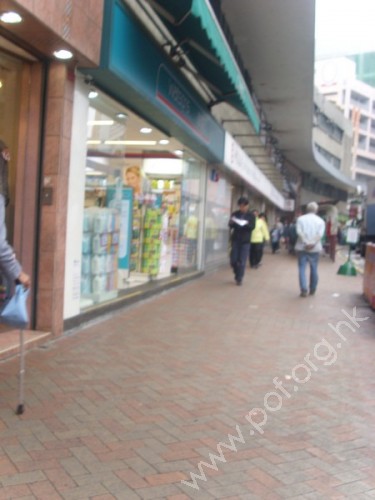 通道寬闊,入口有一級梯級,通道中間放有兩個防盜柱,設有一扇卷閘,無觸覺引路帶。