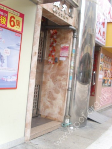 通道寬闊,入口有一級梯級,門口設有一扇不銹鋼密碼閘,旁邊有密碼按鈕,無觸覺引路帶。