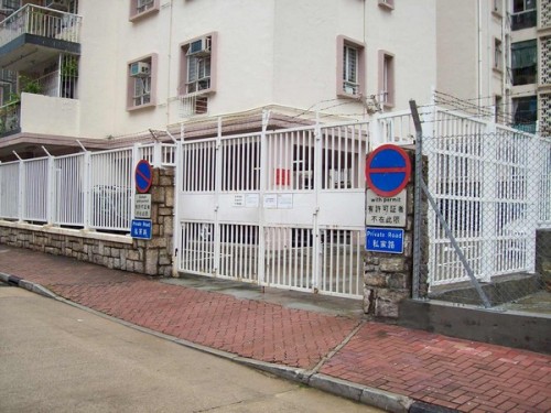 臨街有一級梯級,但行人道附近設有下斜路邊石.雙扇鐵閘,無觸覺警告帶.