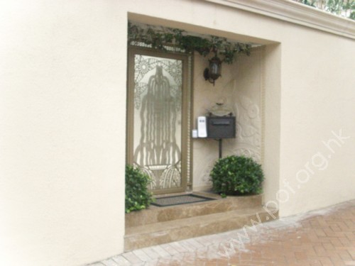 通道寬闊,與人行道接駁處微斜,門口設有一扇卷閘,無觸覺引路帶。