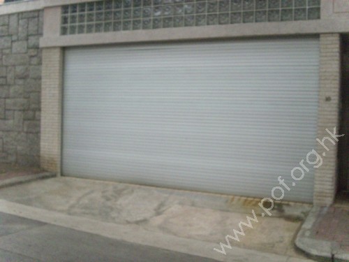 通道寬闊,與人行道接駁處微斜,門口設有一扇卷閘,無觸覺引路帶。