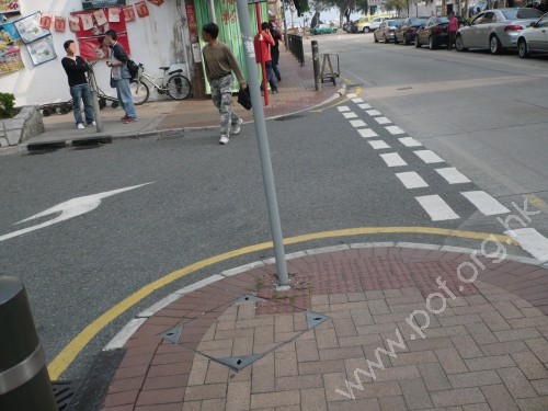 連接汽車路與旁行人路,位於汽車出口兩邊,各有一個,是橫過汽車出口汽車路的行人過路設施,面積寬闊,斜度低矮,斜面設有棕紅色觸覺警告帶,頂端連接行人路,是行人道及保留面積,視野開揚.