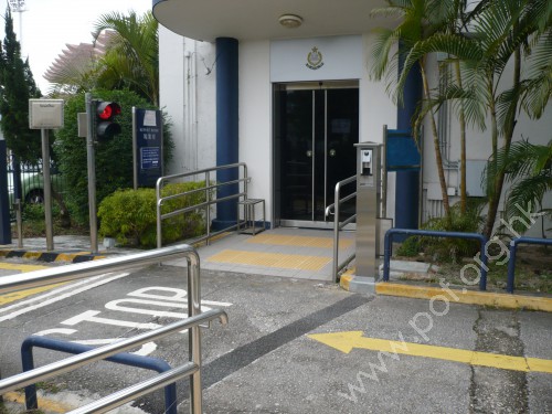 連接報案室正門與警署內汽車路高低位置,斜道寬闊,斜度低矮,頂底兩端設有黃色觸覺警告帶,兩邊設有扶手,固定在兩邊同色欄杆上,兩邊欄杆旁無牆壁.