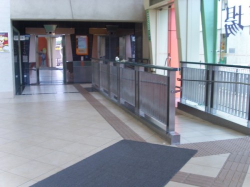 斜道闊過1.05米,兩邊有欄杆及扶手.底頂兩端有觸覺警告帶.斜道中間正好與輪椅入口相接.很方便出入升降機與入口之間.