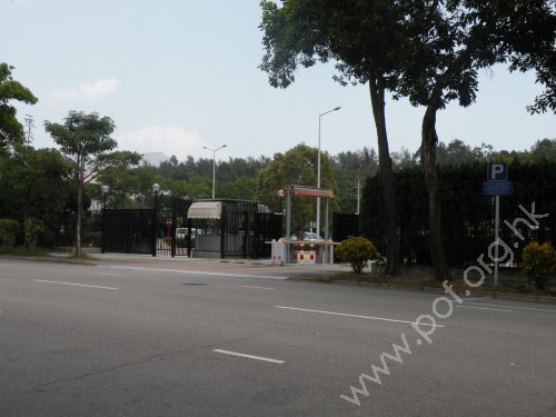 通道是寬闊平坦無障礙的汽車出入口閘門,前設下斜路緣連接汽車路,橫過出入口的行人路無觸覺引路徑,閘門是黑白色金屬框架大閘門.