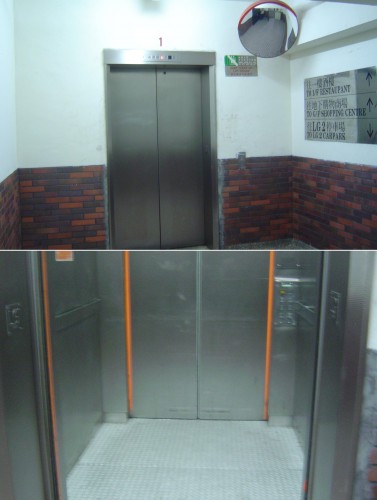 往來建築物地下停車場LG2層,地面層至1樓層,地面層及1樓層出入口在建築物外走廊,無標誌供障殘人士使用,吊廂內扶手是扁平形狀,按鈕有凸字及鐘形標誌,有聲響指示上落方向,無廣播提示,吊廂兩端設門,出入時注意開門方向.