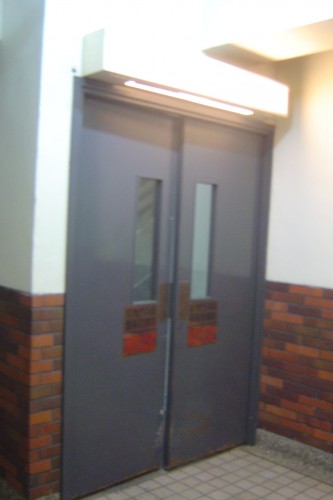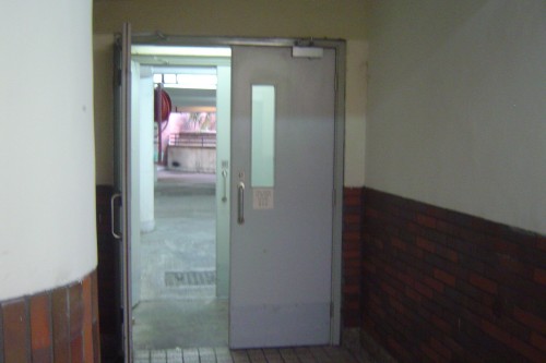 位於LG2層,連接升降機大堂與停車場,通道寬闊平坦無障礙,無觸覺引路徑,門是灰色對開木質推門,門後尚有另一對木質防煙門.