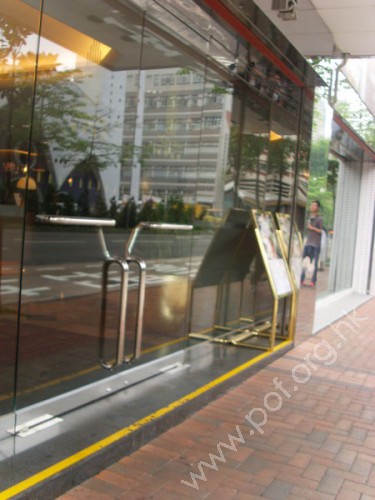 通道寬闊,入口有一級梯級,設有兩扇玻璃推門,無觸覺引路帶。
