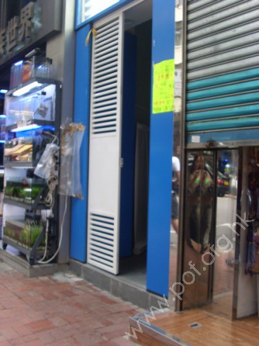 通道闊足1.05米,入口有一級梯級,設有一扇白色鐵閘,閘內只有梯級,無觸覺引路帶。