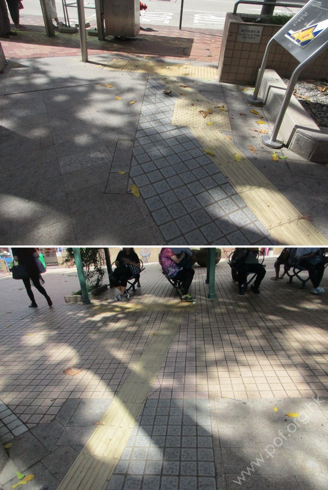 有一條觸覺引路帶,由出入口處引至不遠處的休憩長椅前。